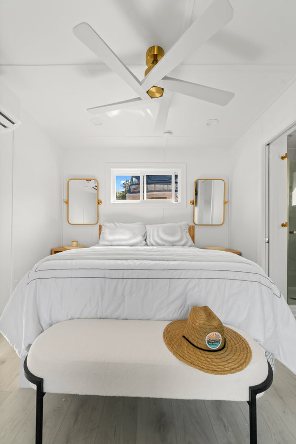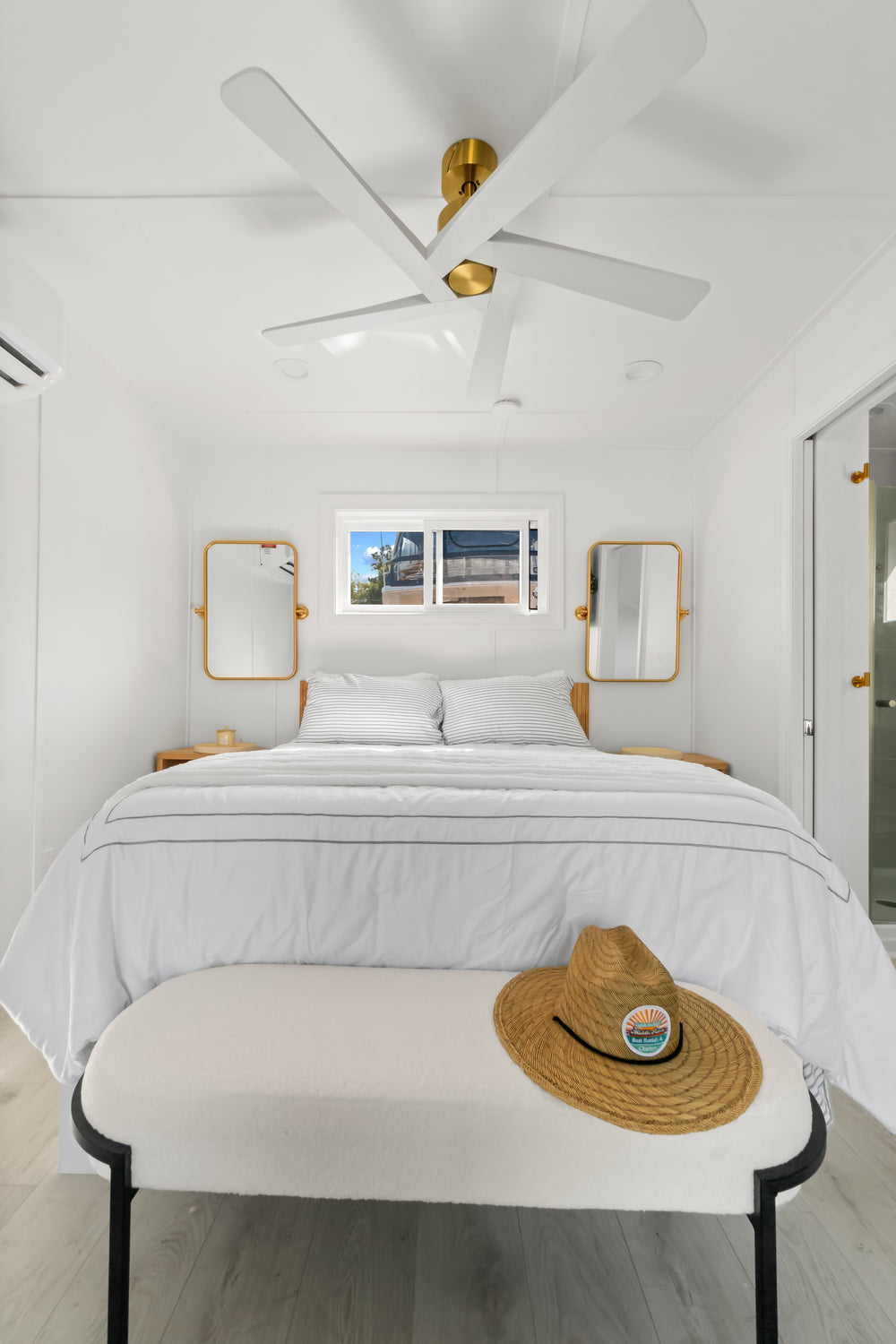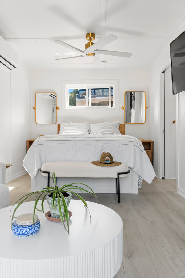 The Bungalow by Hank’s Houseboats is our most compact luxury model, designed to deliver maximum comfort and style in a one-bedroom, one-bathroom open air floor plan. Though modest in size, it packs a serious punch—offering all the hallmarks of Hank’s craftsmanship and attention to detail in a sleek, efficient layout. Whether you’re seeking the perfect weekend getaway retreat, a bespoke man cave on the water, or a serene floating office with endless views, The Bungalow combines practicality with luxury, proving that great things truly come in smaller packages.