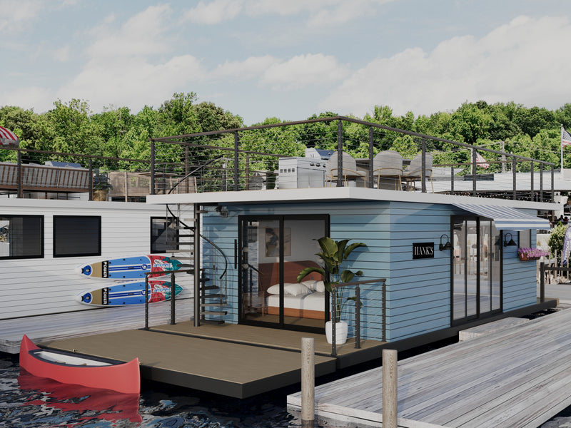 STEP ABOARD YOUR TURNKEY HOUSEBOAT. JUST PLUG IN AND ENJOY WATERFRONT PEACE AND FREEDOM